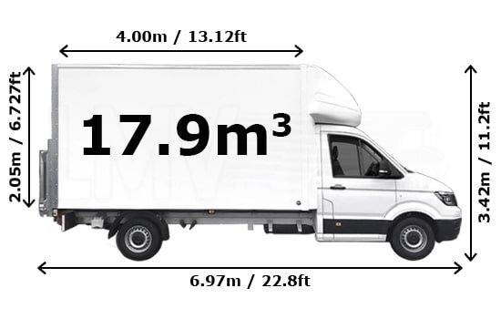 The Luton Van, equipped with a tail lift and boasting a loading space of 17 cubic meters, is perfectly designed for transporting larger household goods. It can accommodate the contents of a 2-3 bedroom house. This includes furniture such as sofas, king-size beds, and wardrobes; appliances like washing machines and tall fridge-freezers; boxes, with a capacity to hold around 60-70 standard moving boxes; or luggage, fitting approximately 45-50 large suitcases.